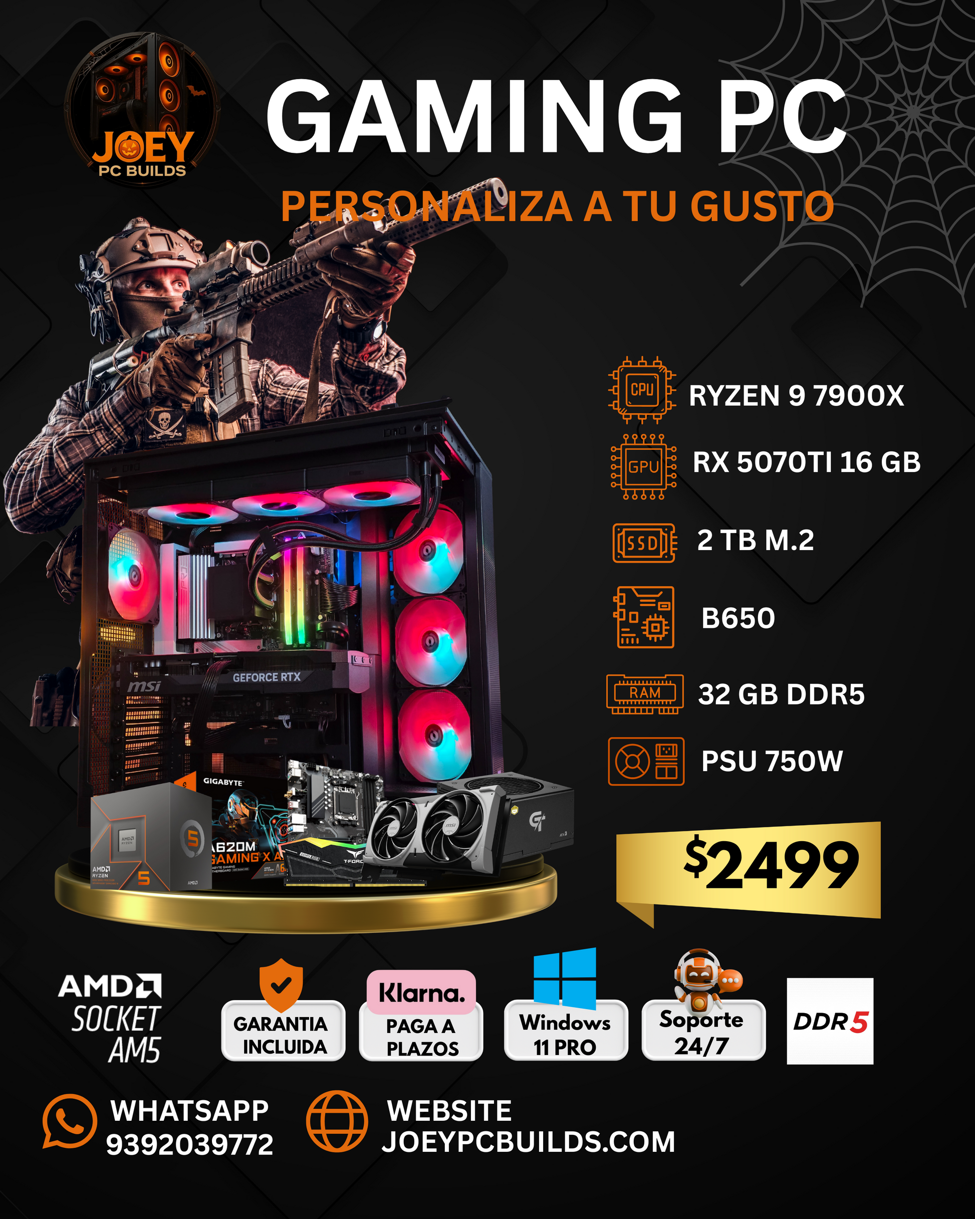 🎃🕸️ Demon Slayer Pro Ryzen 9 7900X + RX 5070 Ti 16GB | 32GB DDR5 | 2TB SSD M.2 | B650 | PSU 750W 👻💀